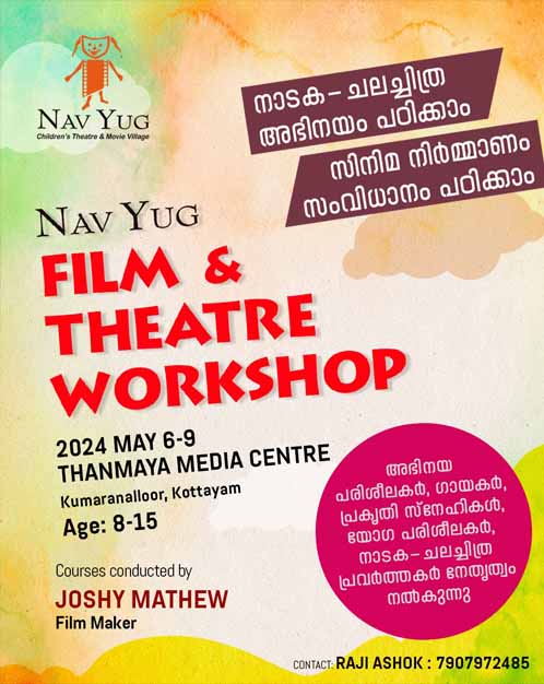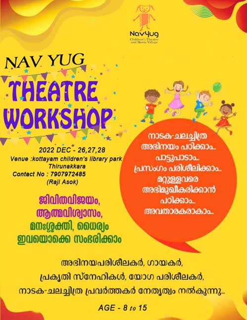 Theatre Workshop conducted by Navyug Childrens Theatre and Movie Village at Kottayam 26, 27, 28 December 2022 at Kottayam Childrens Library Park, Thirunakkara, Kottayam.