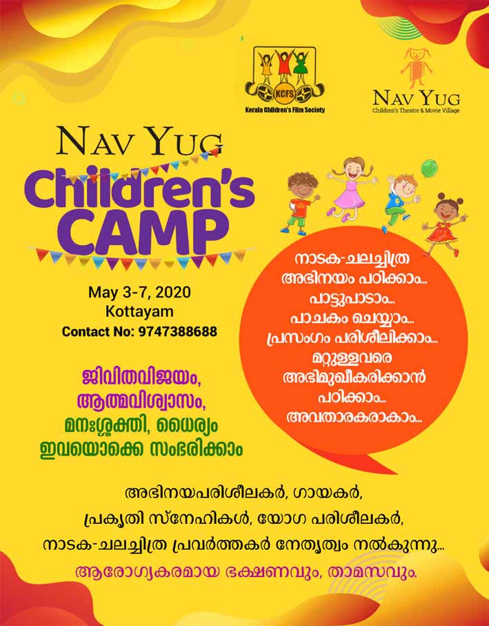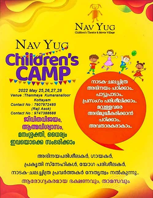 Childrens Camp conducted by Navyug Childrens Theatre and Movie Village at Kottayam 25,26,27,28 May 2022.