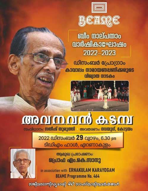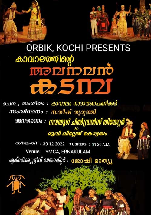 "AVANAVAN KADAMBA" Drama Presentation conducted by Navyug Childrens Theatre and Movie Village on 29 December 2022, 6:30pm at TDM Hall, Ernakulam.